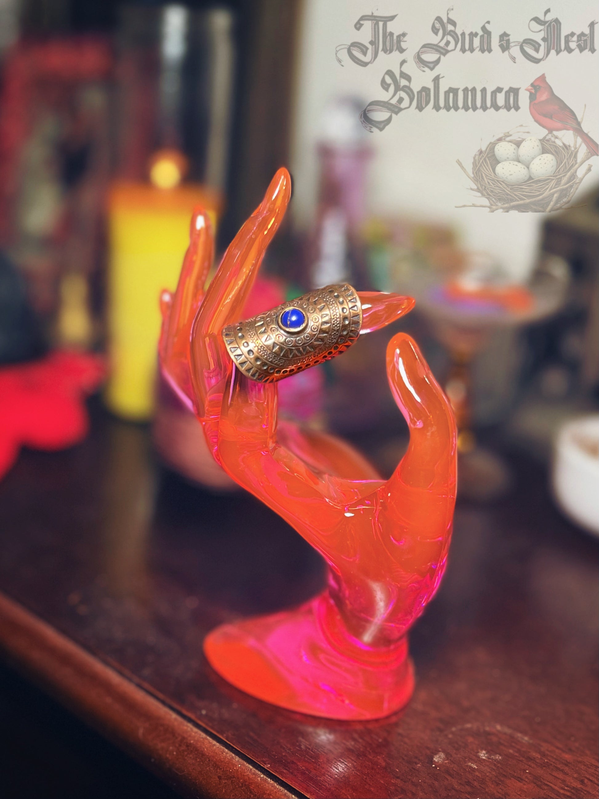 This piece is full of mysticism. Think of it as a conductor of harmonizing energy! When you pair copper with Lapis Lazuli, you get a fabulous relic perfect for constructing and protecting your psychic energy. Lapis is known for protection, intuition, inner vision and is believed to activate the third eye chakra. Often looked at as a protective stone in spirituality. Copper is said to symbolize energy flow, vitality, grounding and alignment. In alchemy, copper is linked to revealing inner truth and illuminating hidden aspects of the soul.